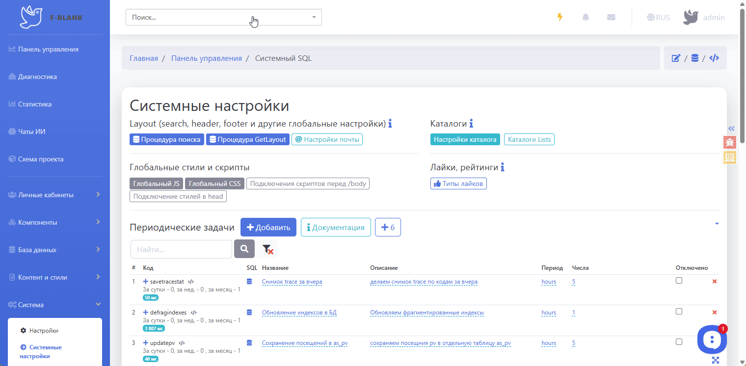 Выводится сверху личных кабинетов форма поиска. При вводе параметров вызывается специальная хранимая процедура и отображаются результаты поиска по разным объектам системы.