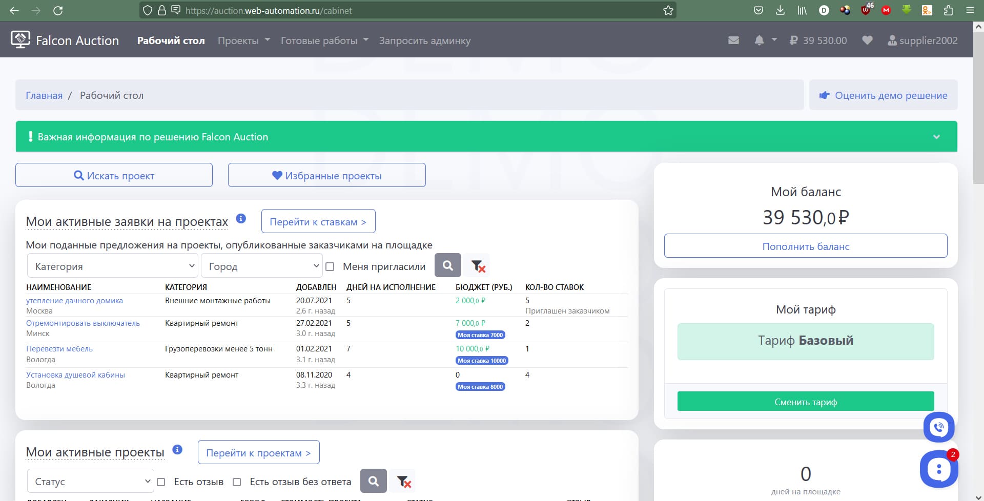 Смотреть демо площадки услуг Falcon Auction