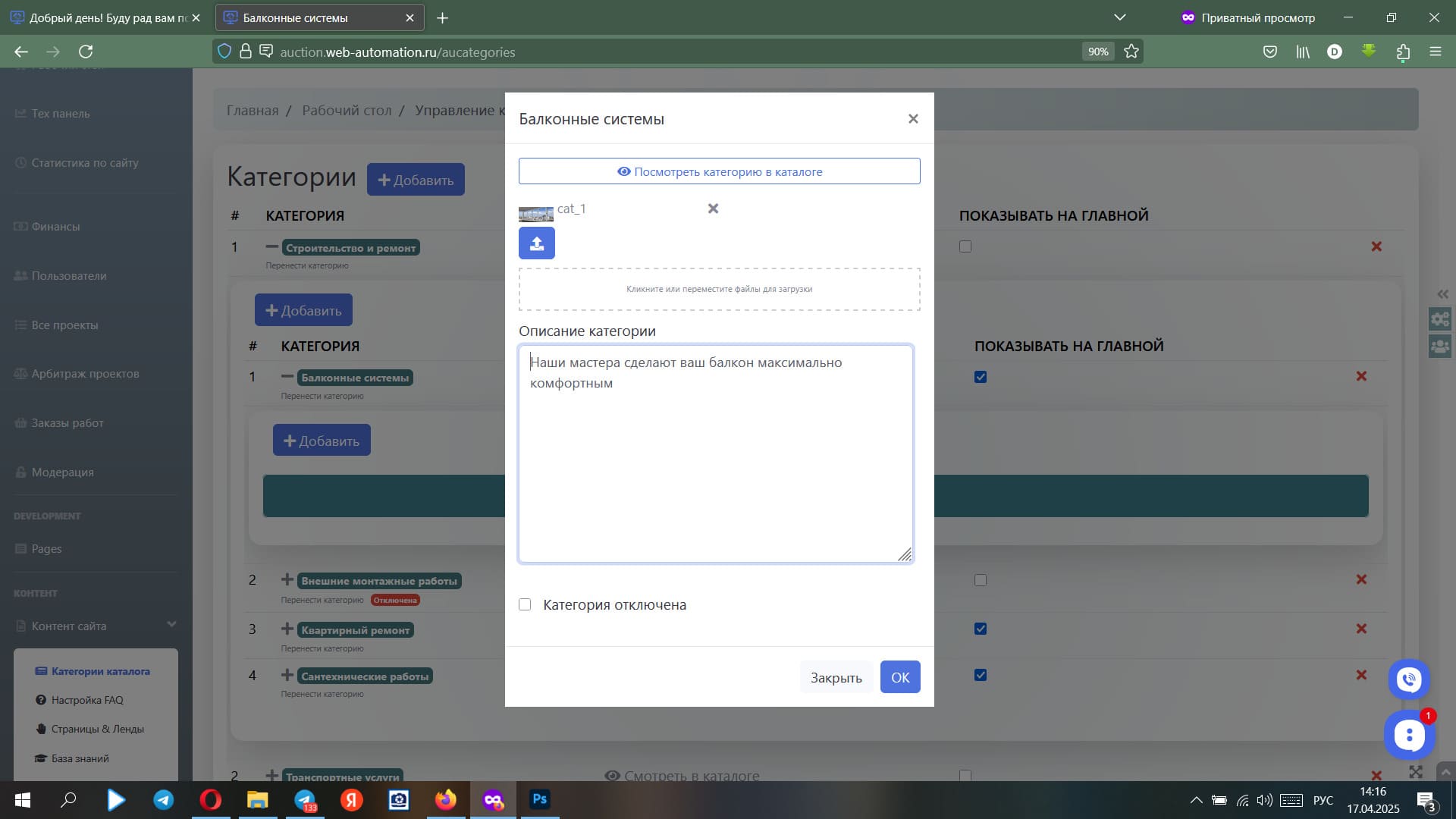 Он также может редактировать категории каталога, их описание и географический справочник.