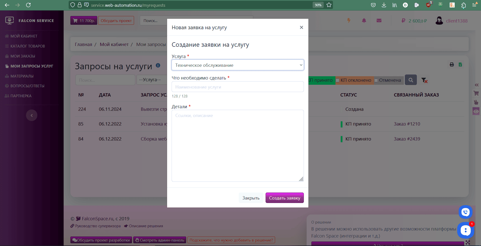 Решением данной проблемы станет использование платформы Falcon Service. Пользователи вашей компании смогут отправлять запросы через сайт или его мобильную версию, заполняя необходимую информацию и прикладывая нужные файлы документов. После подачи заявки система автоматически направит уведомление ответственному менеджеру, который сможет незамедлительно приступить к обработке запроса.
