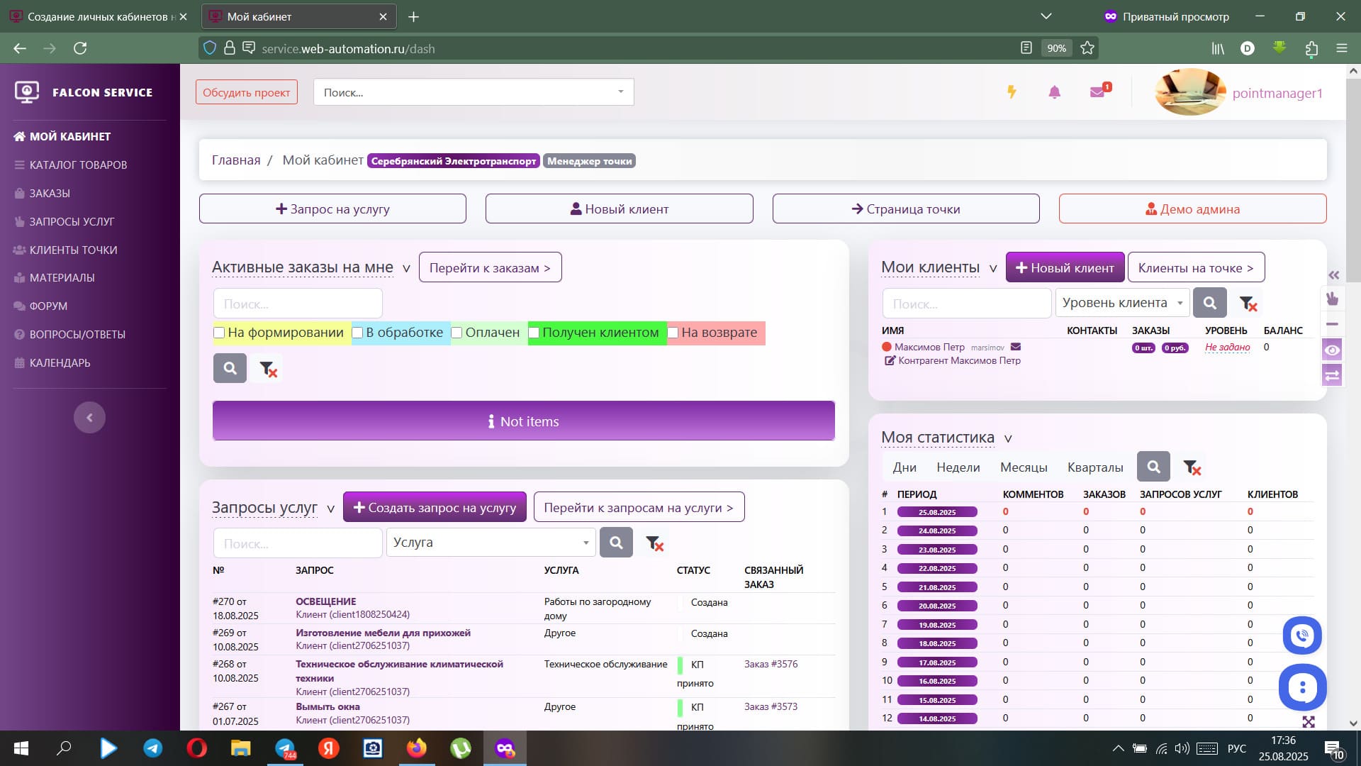 Кабинет менеджера в готовом решении Falcon Service: