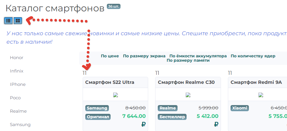 Как сделать в каталоге List переключение вида элементов каталога