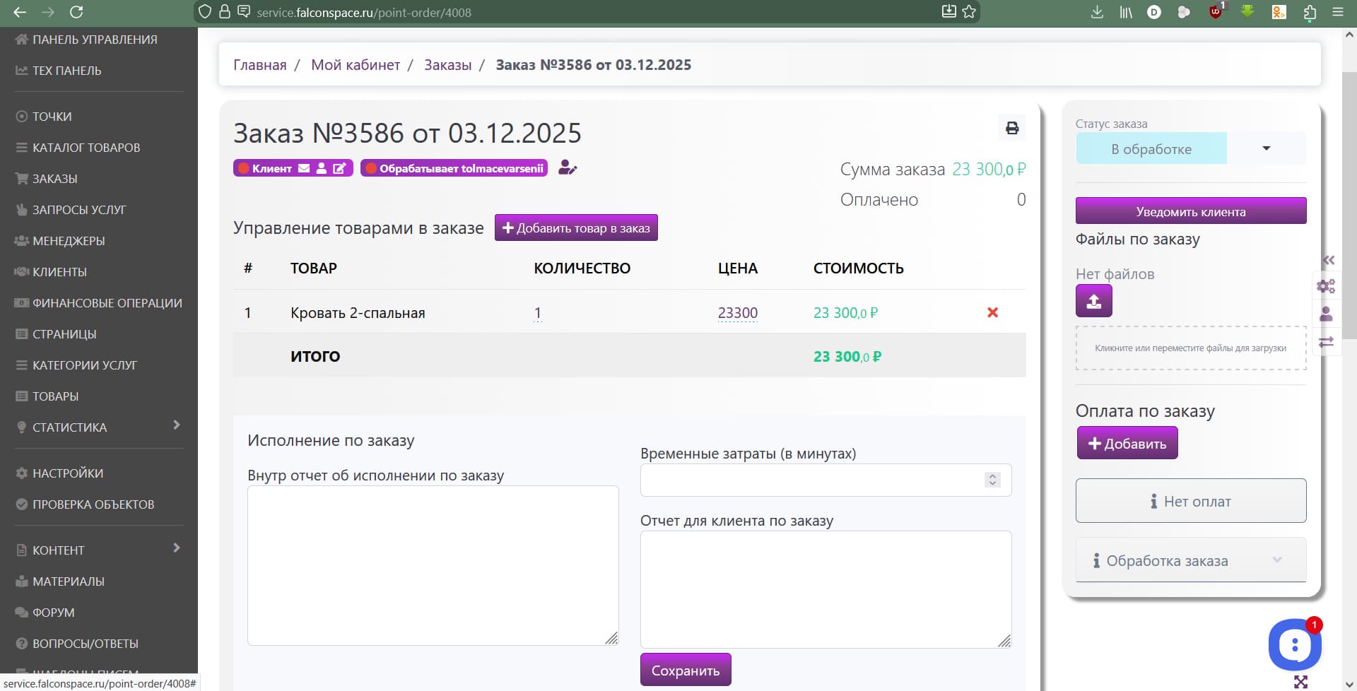До автоматизации: - Менеджер получает заказ по почте - Вручную создает запись в системе - Отправляет подтверждение клиенту - Контролирует выполнение заказа