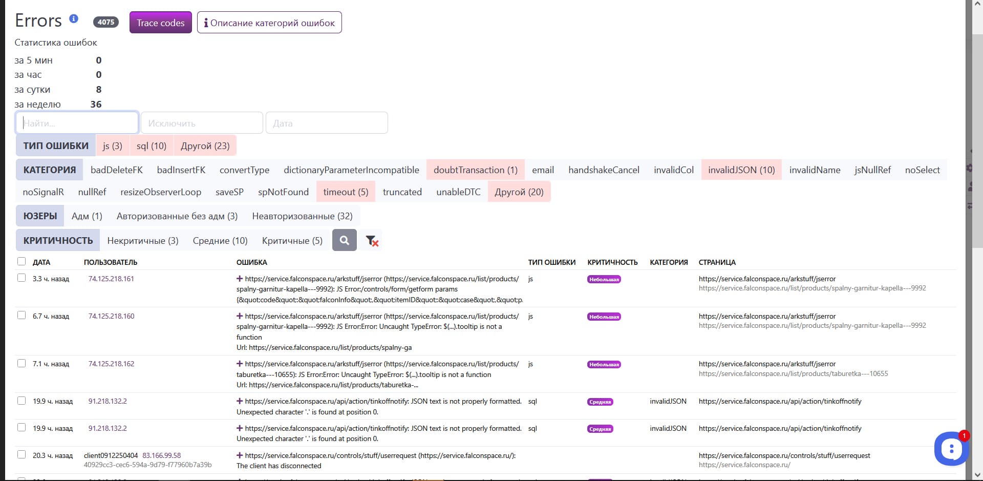 - Невозможность анализа: Непонятно какие проблемы возникают чаще всего