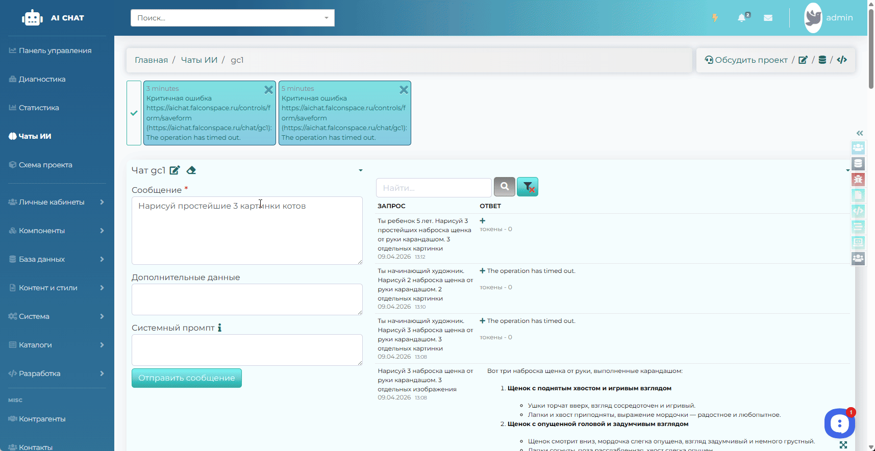 Также в документации выделили отдельную категорию по работе с искусственным интеллектом. https://falconspace.ru/docs/cat-ai
